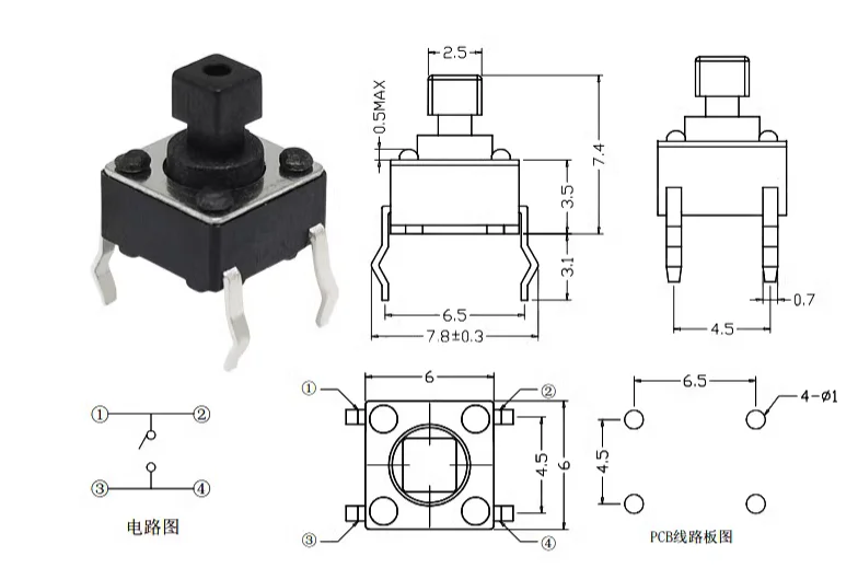 Comprar 20 unids/lote 6x6x7,3(H)mm DIP cabeza cuadrada Micro botón táctil interruptor momentáneo electrónico drucktaster Taster schalter