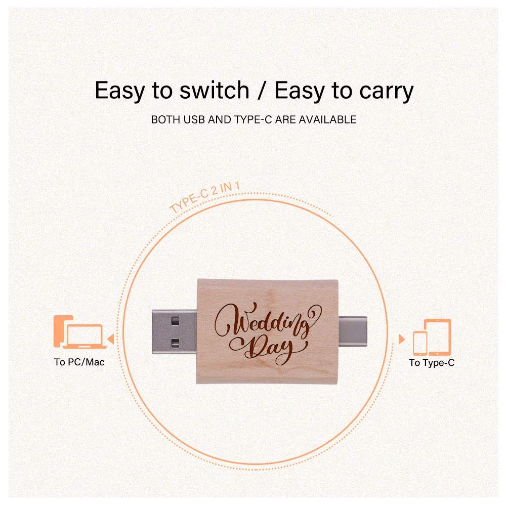 Características: ●Almacenamiento de datos duradero: 4 GB/8 GB/16 GB/32 GB/64 GB/128 GB/256 GB. ●Rendimiento de transferencia de datos de alta velocidad USB 3.0. ●Diseño de unidad flash USB: pequeña y portátil. ●Plug and play: No necesita unidad/fuente de alimentación, solo conéctelo. ●Compacto: el diseño de la cubierta de madera puede proteger el conector. ●Chip de clase A: se puede borrar repetidamente 100.0000 veces. ●Sistema operativo: Windows 98 / ME / 2000 / XP / Vista / 7 / 8 / 10, Mac OS 9,X, Linux2.4 o superior. ●Velocidad de escritura: 10 Mb/s – 20 Mb/s.La tasa de rendimiento depende de los diferentes sistemas operativos disponibles y de los distintos flashes adoptados, por lo que la velocidad puede ser diferente.
