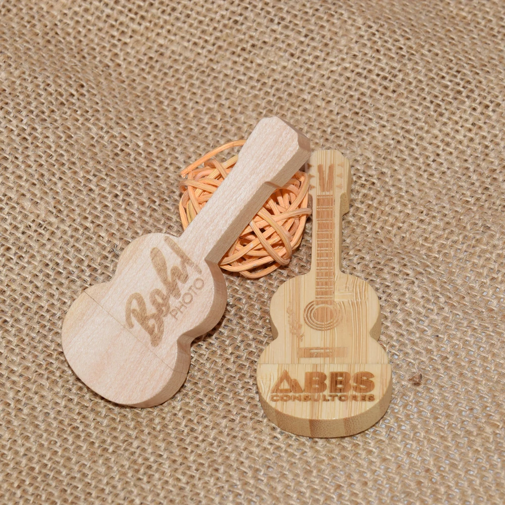 Comprar 20 unids/lote unidad flash usb de guitarra de madera logo gratis regalos de música pendrive 4GB 8GB 16GB 32GB cle usb 64GB 128GB disco usb