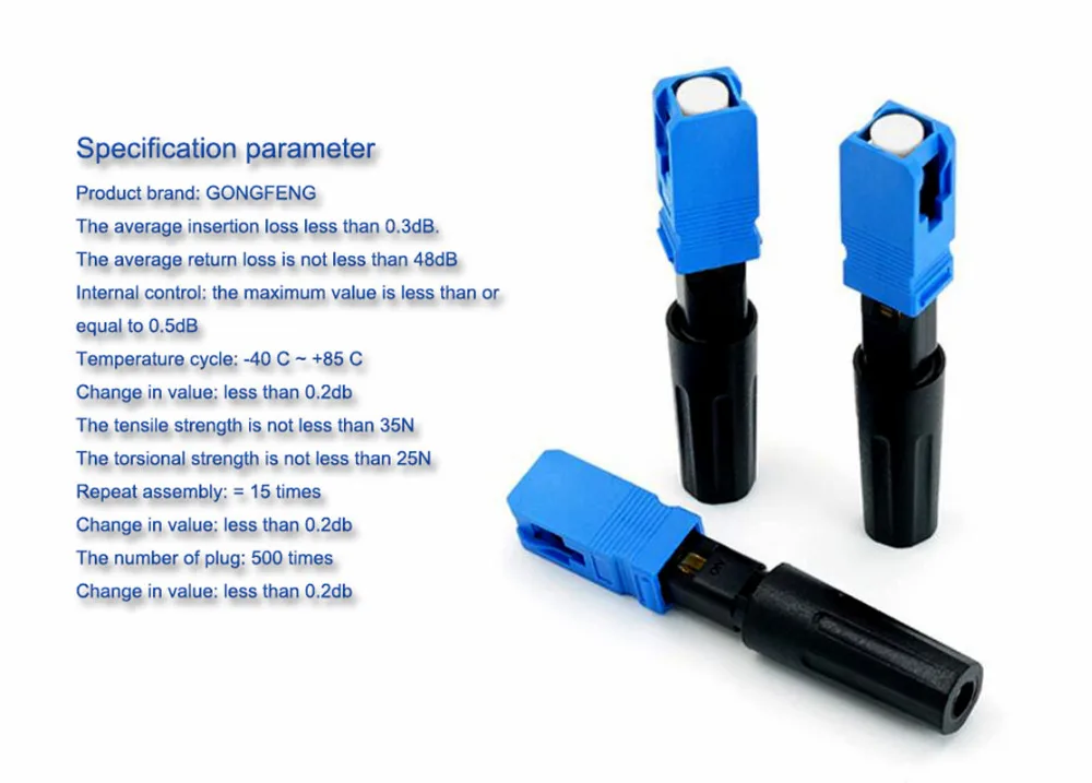 Model SC/APC, radio and television dedicated. The reliability of the optical fiber clamping is very good, the stability is good, the insertion loss is small, the installation speed is very fast, and can be used again.