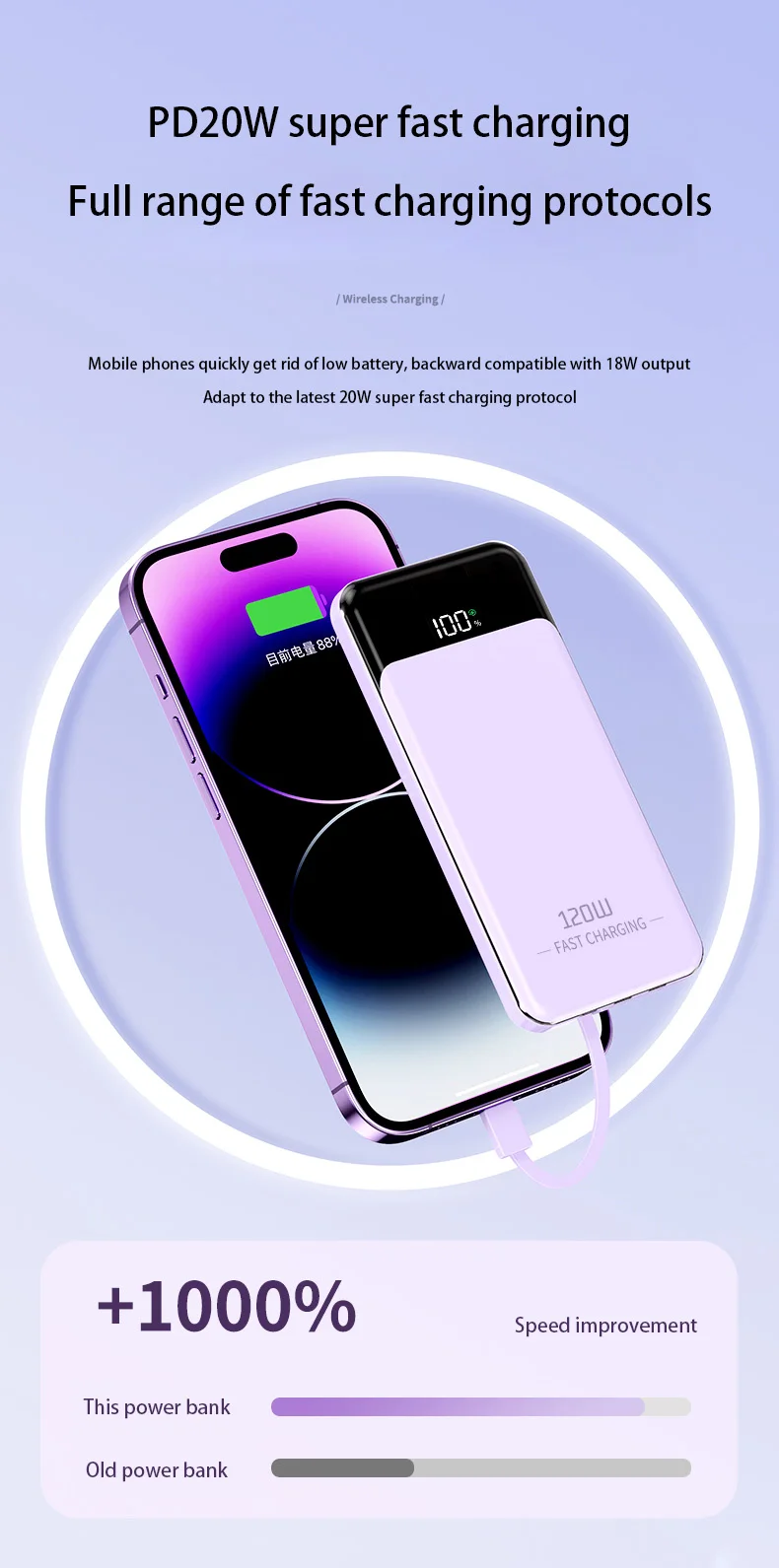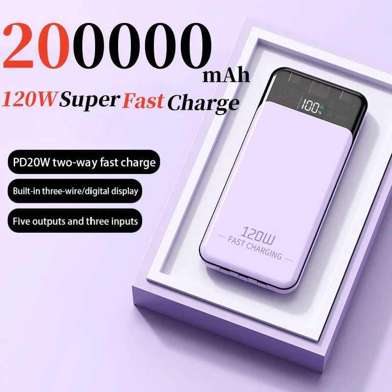 200000 Banco de energía de carga súper rápida mAh de alta capacidad con Cable banco de energía móvil portátil para Apple Xiaomi Samsung nuevo