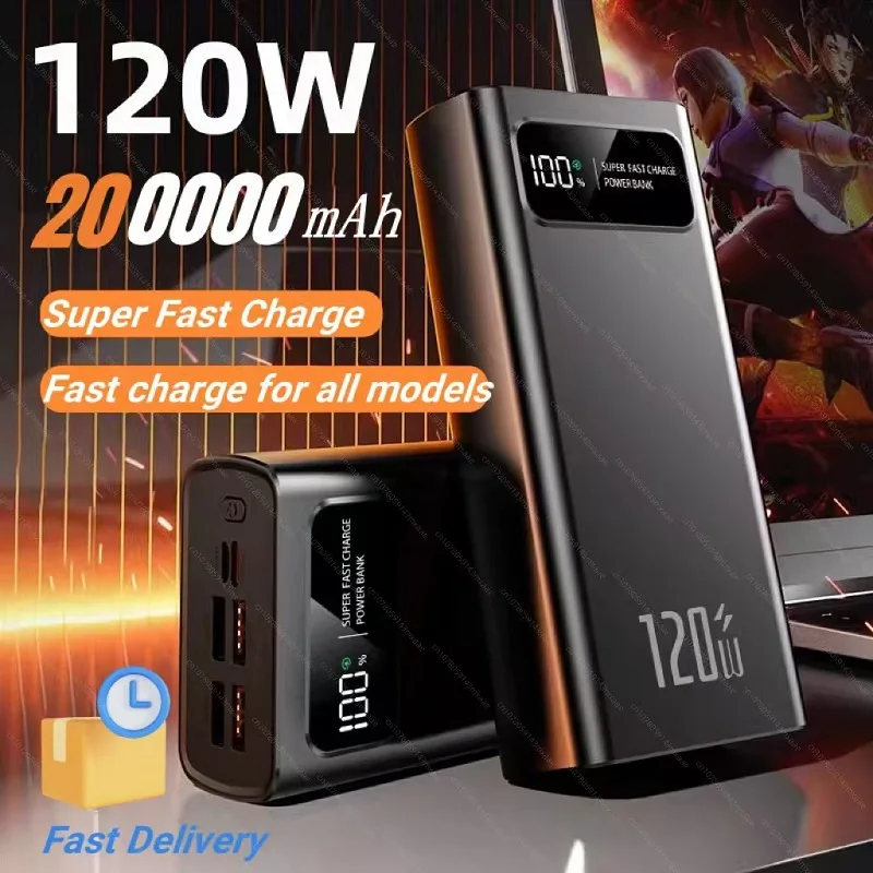200000mAh Power Bank 120W batería de carga súper rápida batería de alta capacidad pantalla Digital Power Bank para Iphone Samsung Huawei 2025