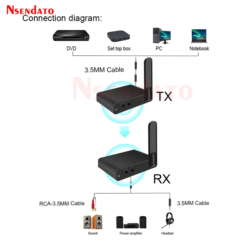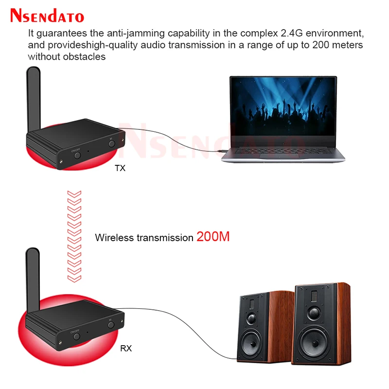200M 2,4G Hifi música Digital sonido transmisor de Audio inalámbrico adaptador receptor 3,5mm Cable de Audio RCA para PC teléfono iPad Ipod DVD