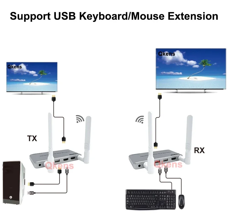 Este extensor inalámbrico HDMI KVM utiliza módulos 2,4G y 5G para permitir alta velocidad y alto rendimiento