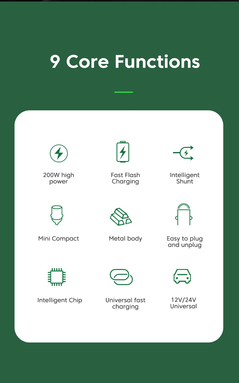 Nuevamente, prometido 200W y carga rápida pero solo en la descripción. De hecho, es una estafa.