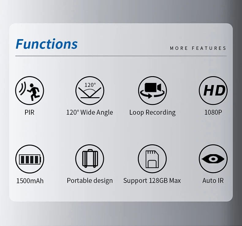 4.120° Cámara infrarroja de gran angular, el tiempo de espera es de aproximadamente 120 días.¡Si el vídeo continuo puede alcanzar entre 10 y 12 horas!
