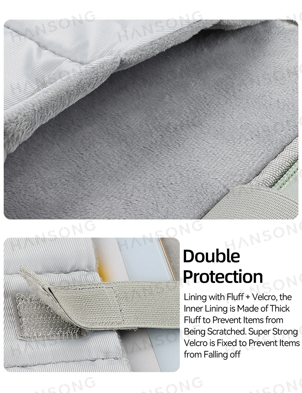 Forro con pelusa y velcro, el forro interior está hecho de pelusa gruesa para evitar que los artículos se rayen.El velcro súper fuerte se fija para evitar que los artículos se caigan.