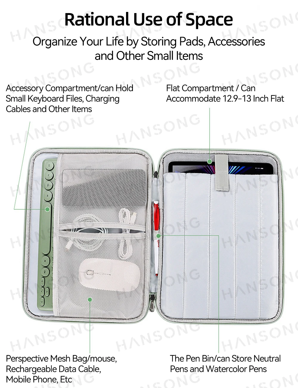 1.Compartimento para accesorios/puede contener archivos pequeños para teclado, cables de carga y otros artículos.
