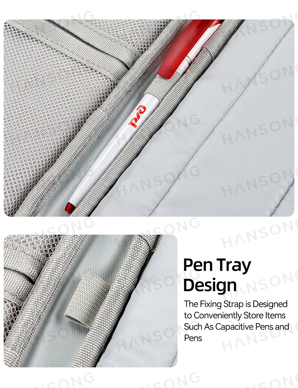 La correa de fijación está diseñada para almacenar cómodamente artículos como bolígrafos capacitivos y bolígrafos.