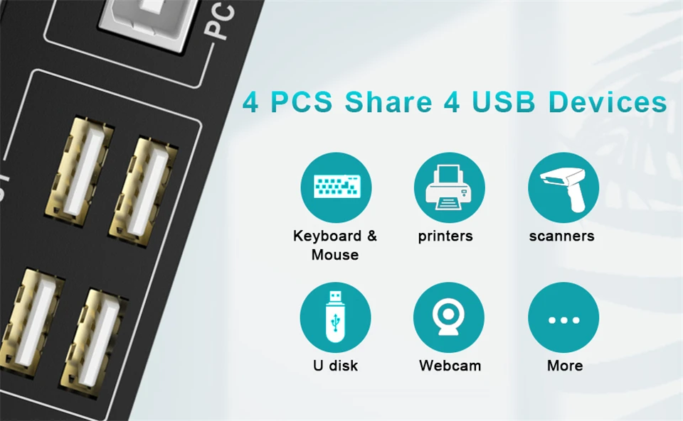 Está diseñado para la multitarea con cuatro ordenadores a su gusto, aumentando la productividad en la oficina o en casa. Puede cambiar entre 4 ordenadores usando un interruptor manual ubicado en la parte superior de la unidad KVM.