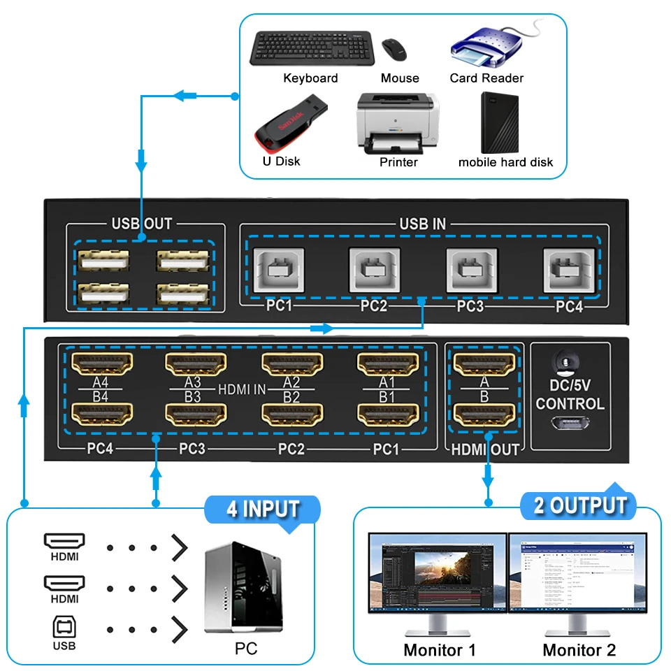 HDMI IN A4 + HDMI IN B4 + USB IN4=PC4