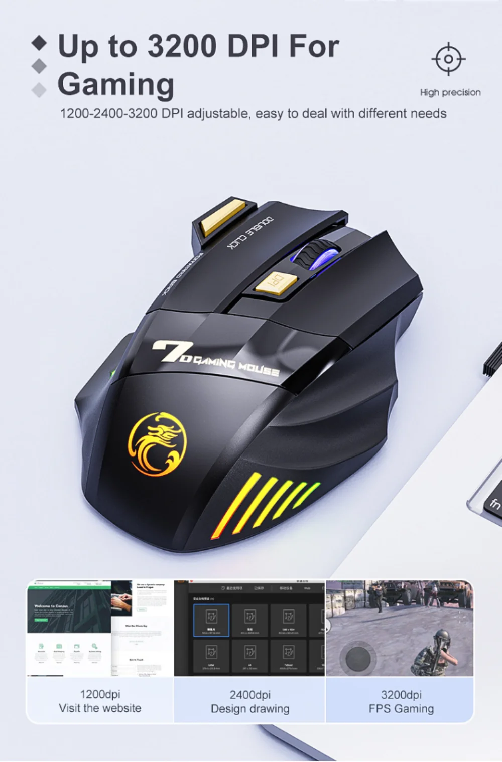 Comprar 2023 nuevo C libre doble clic 2,4G Btooth silencioso recargable deslumbrante luz de respiración ratón de juego inalámbrico 7 teclas