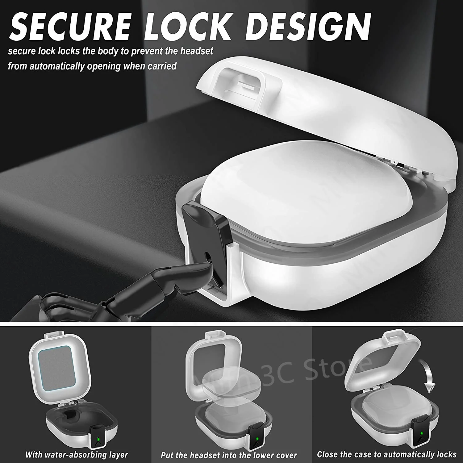 Función de bloqueo de seguridad: la carcasa de los auriculares tiene un diseño de una sola pieza, por lo que no hay necesidad de preocuparse de que las cubiertas superior e inferior se pierdan o se separen. El estuche tiene una función de bloqueo de seguridad en la parte delantera.La cubierta superior se abrirá automáticamente cuando presione el botón de bloqueo frontal. Ya no tendrá que preocuparse de que el estuche abra y deje caer automáticamente sus auriculares Galaxy Buds Live/Pro/2 mientras hace ejercicio al aire libre.