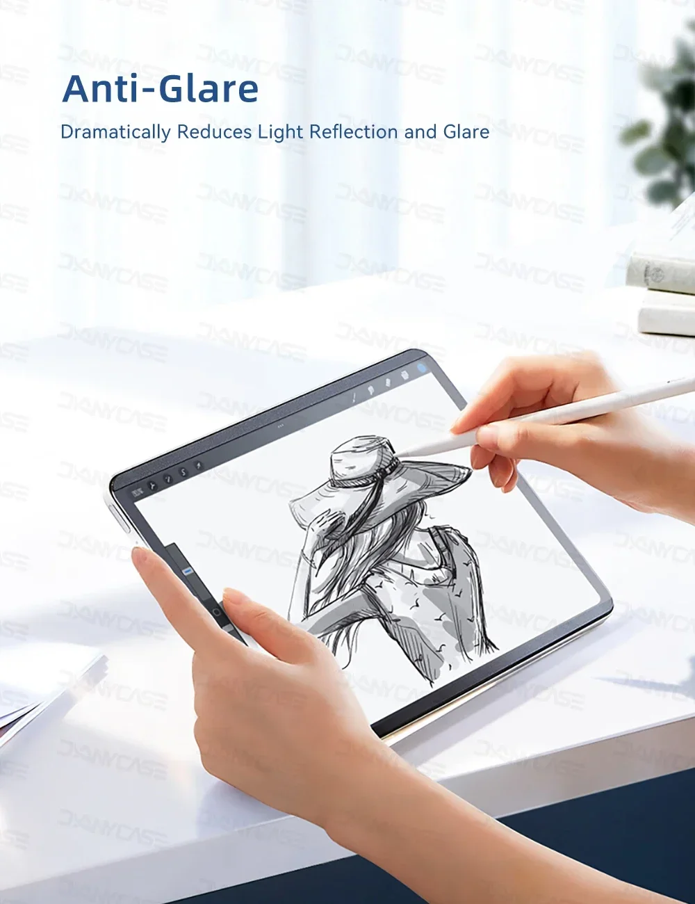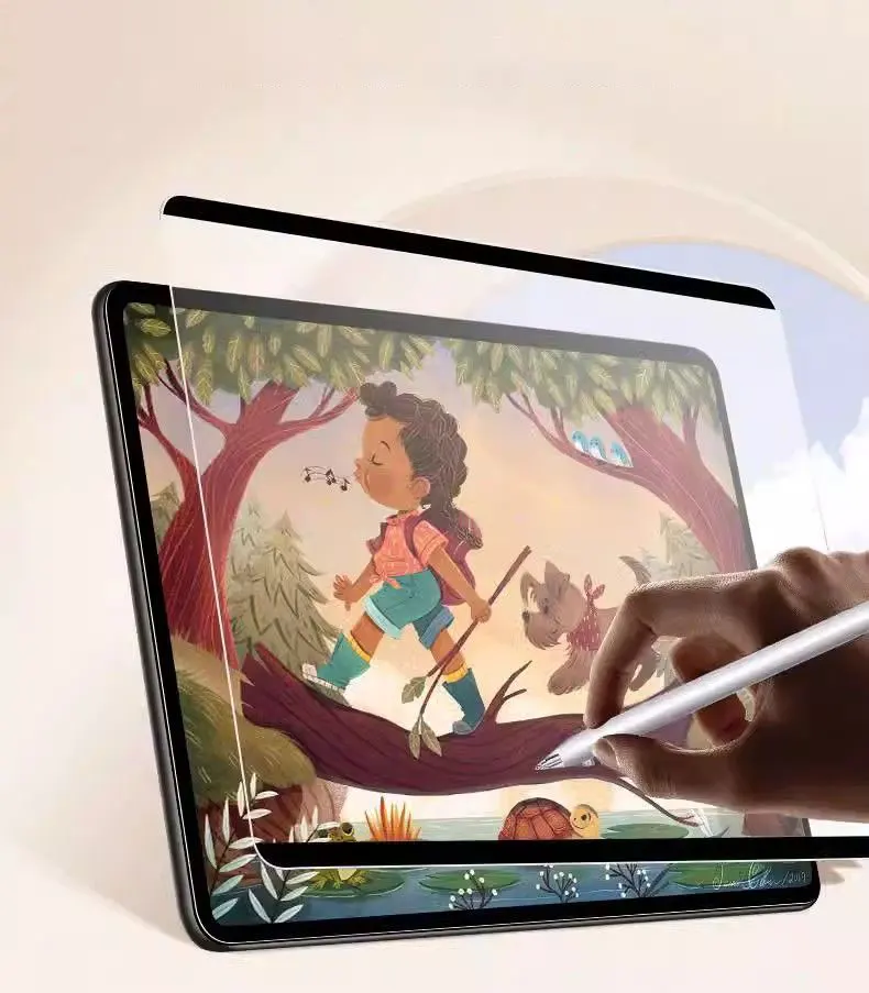Hace lo que dice, hace que toda la pantalla sea mate y es mucho más fácil dibujar, lo que lo hace sentir como un lápiz real. Los imanes que uso son un poco más fuertes porque a veces se sueltan y en el medio de la pantalla puede haber un pequeño espacio, pero esto apenas es un problema. Muy recomendable por el precio. También me gusta la billetera protectora que proporcionan para guardarla.