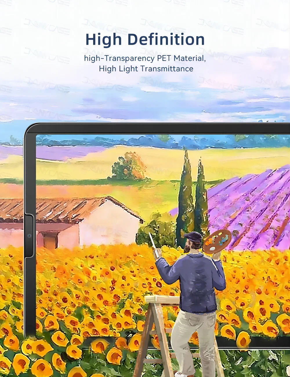 Fue muy fácil de instalar, solo colóquelo en el iPad y se adherirá con magnetismo. La experiencia de escritura con Apple Pencil también es excelente!!. Anteriormente, estaba usando una película de vidrio, así que me preocupaba la sensación de clic cuando el bolígrafo toca la superficie del vidrio, pero eso ya no está. La escritura a mano y el dibujo han vuelto a ser mucho más agradables. Muchas gracias.