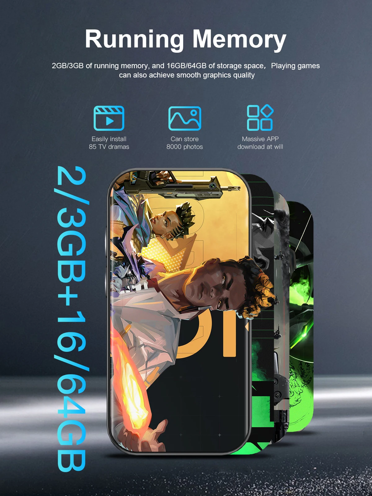 2 GB/3 GB de memoria ejecutiva y 16 GB/64 GB de espacio de almacenamiento. Los juegos también pueden lograr una calidad de gráficos fluida.