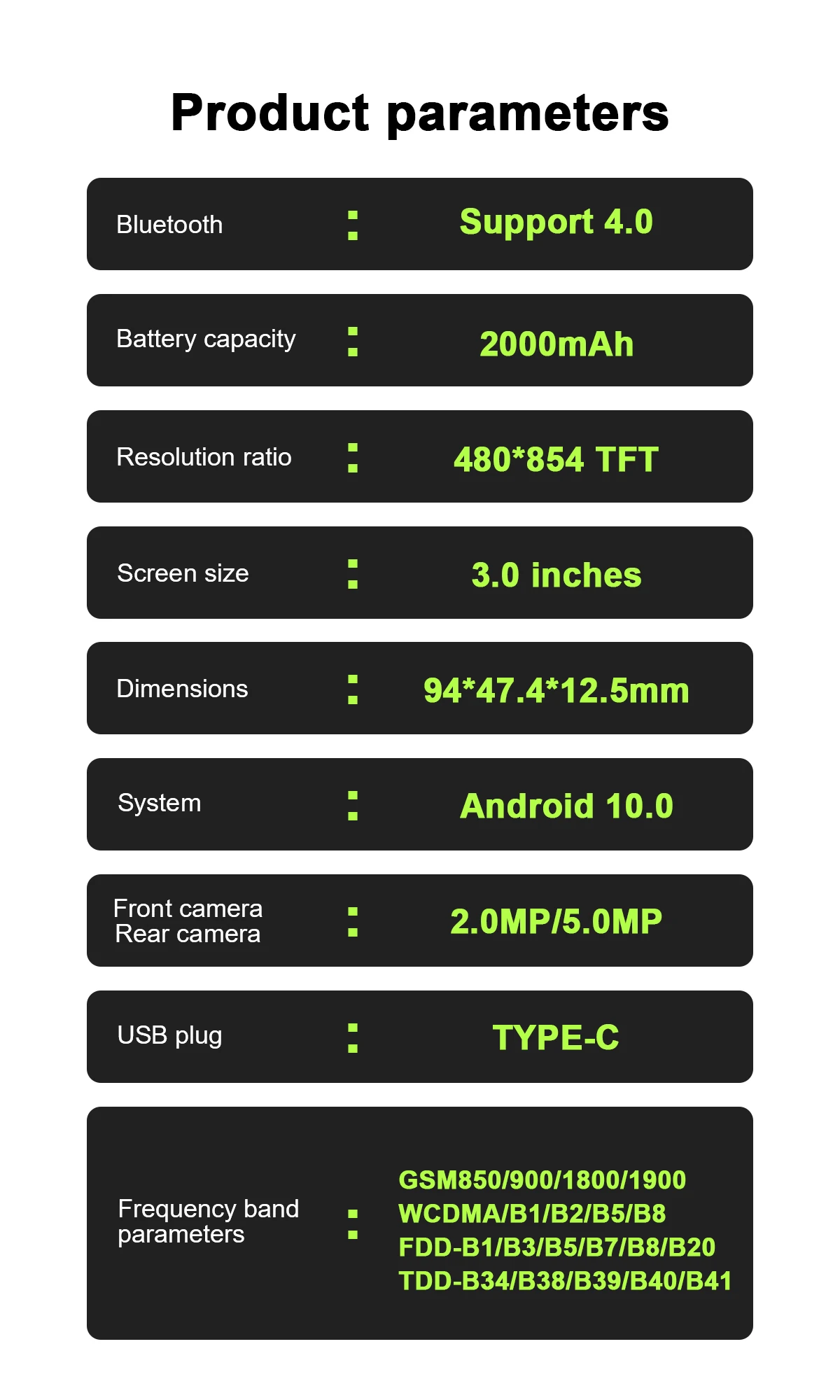 Tamaño del teléfono: 94*47,4*12,5 mm