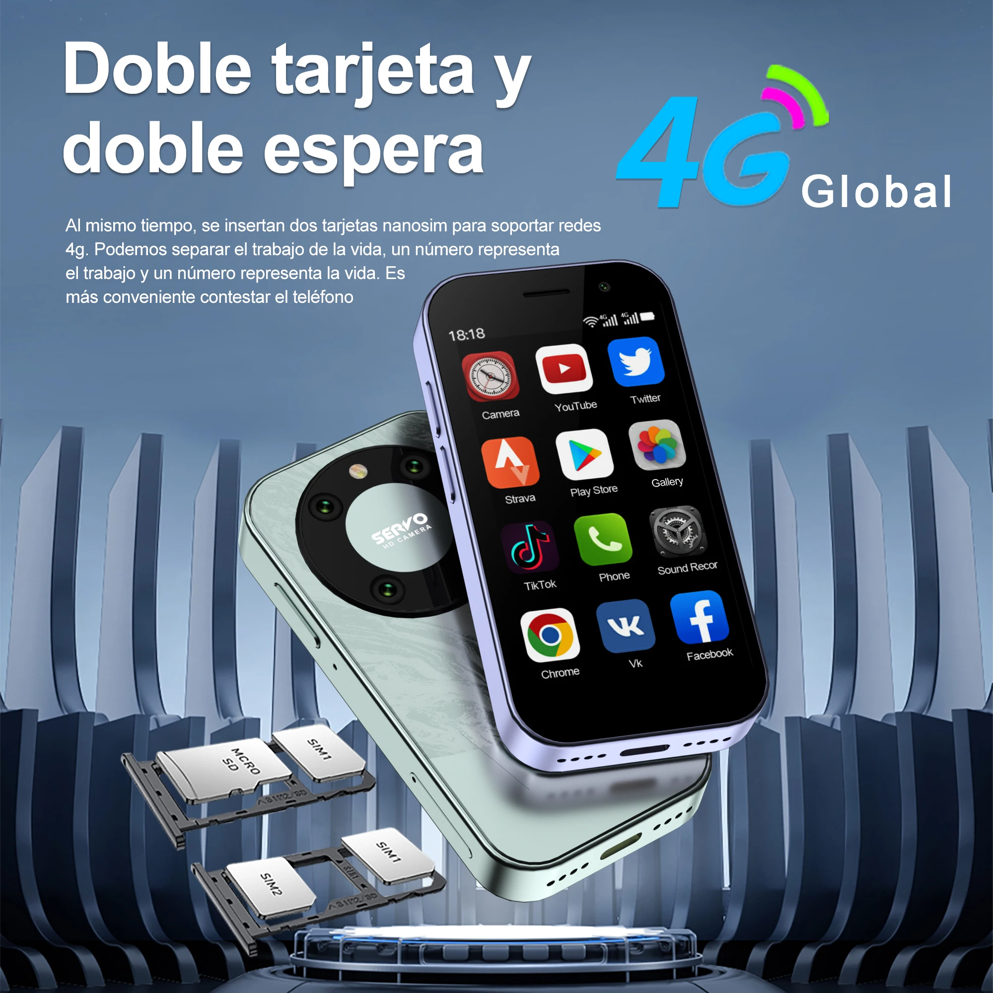 Cantidad de tarjetas SIM: 2 tarjetas SIM (2 tarjetas Nano SIM/1 tarjeta Nano SIM + 1 tarjeta de memoria TF)