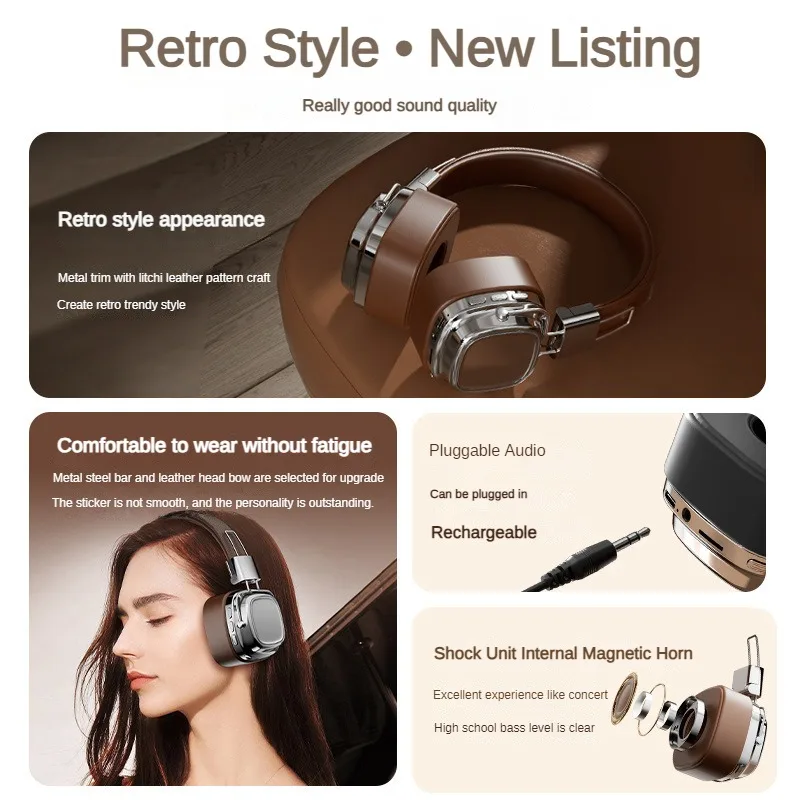2024 nuevo CR-8 auriculares clásicos por encima de la oreja estudio Dj estéreo Bluetooth 5,3 auriculares Retro inalámbricos Control táctil tipo C auriculares