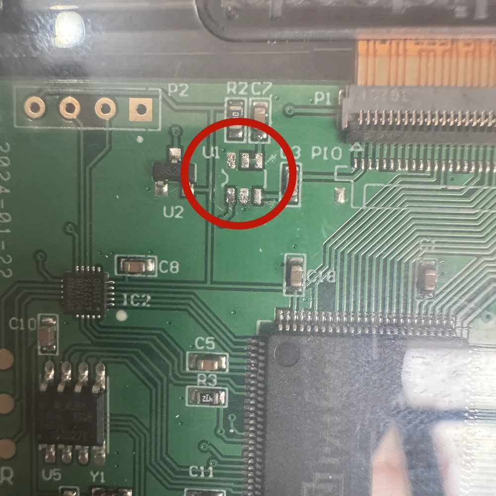 U1 es un chip táctil.Puedes quitar este chip.Evite tocar accidentalmente el ajuste de la pantalla LCD.