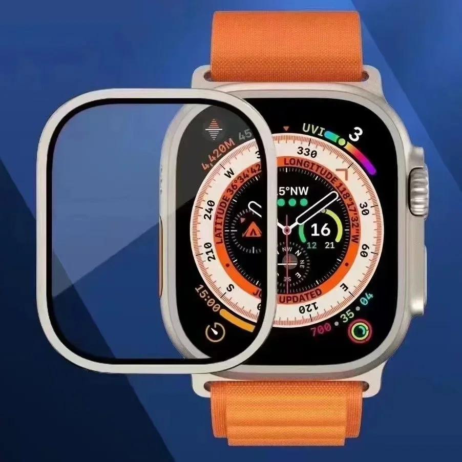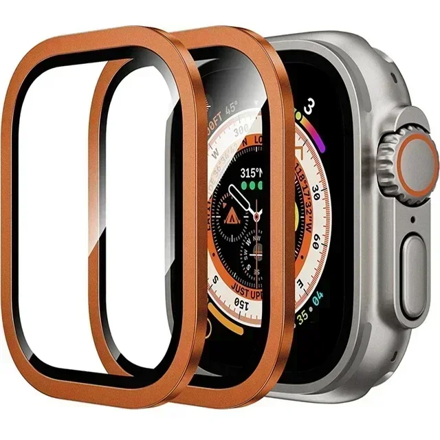 Parachoques de Metal + vidrio templado para Apple Watch Ultra 49mm, accesorios, Protector de pantalla, película completa HD antiarañazos, iWatch Ultra 49mm PARA APPLE WATCH Ultra: Perfectamente compatible con Apple Watch Ultra 49 mm, fácil de instalar, sin burbujas.