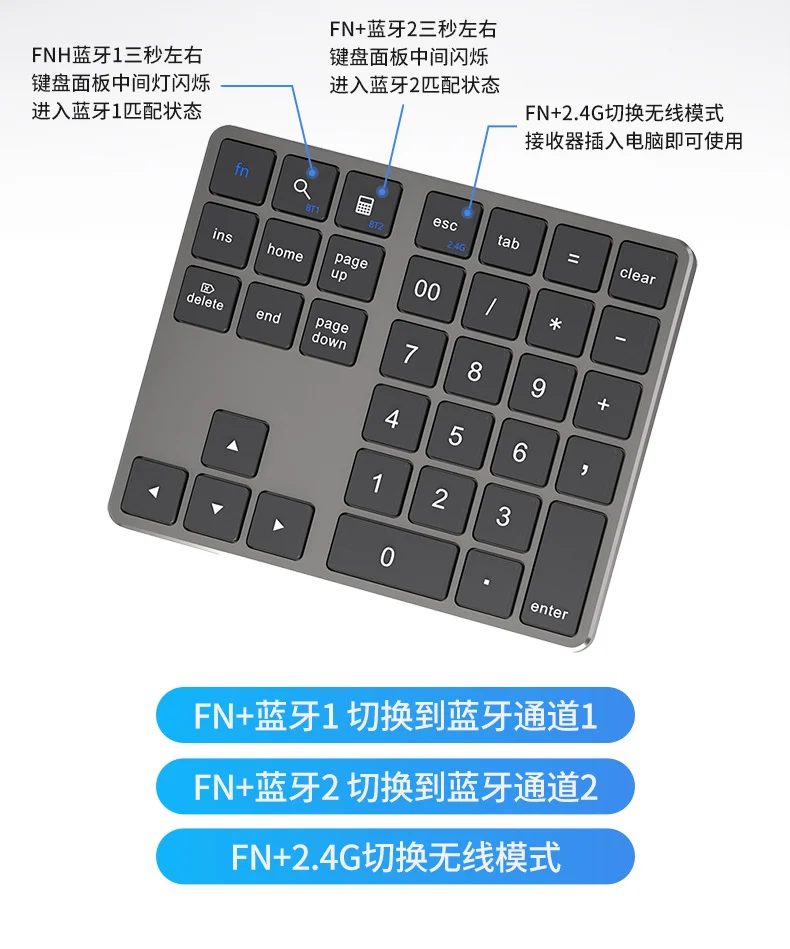 Name: Dual Bluetooth + 2.4G Wireless Numeric Keypad