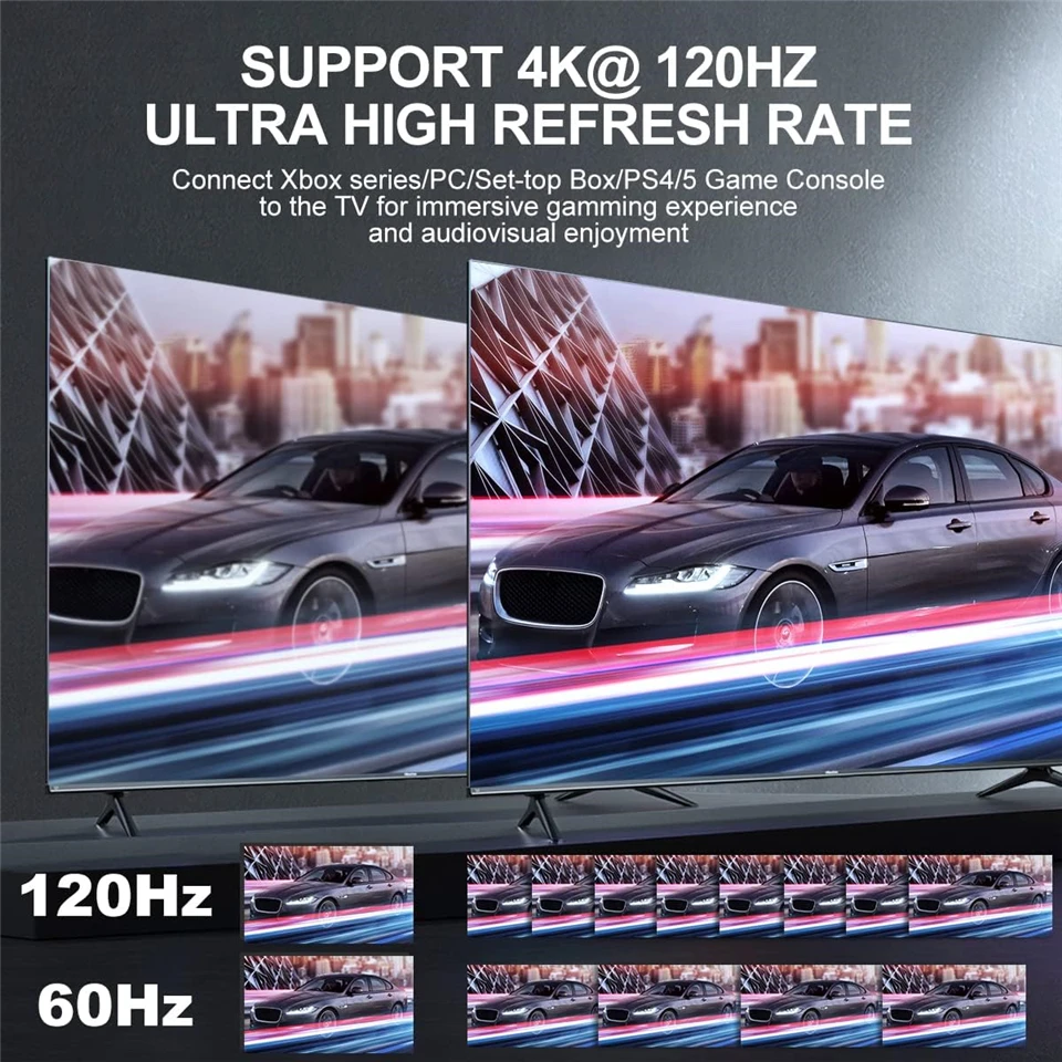 Distancia del cable de salida: cable estándar HDMI AWG26 de 3 m --- 4K@120Hz
