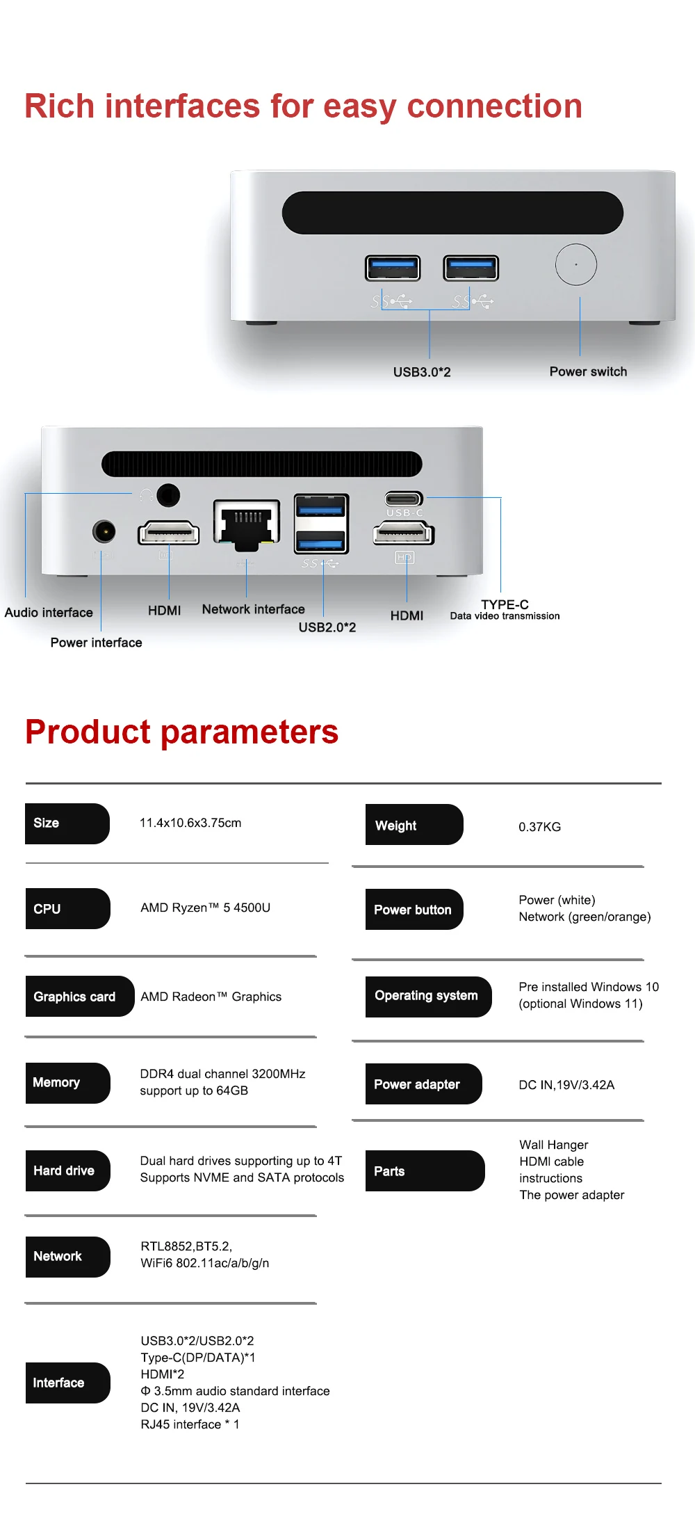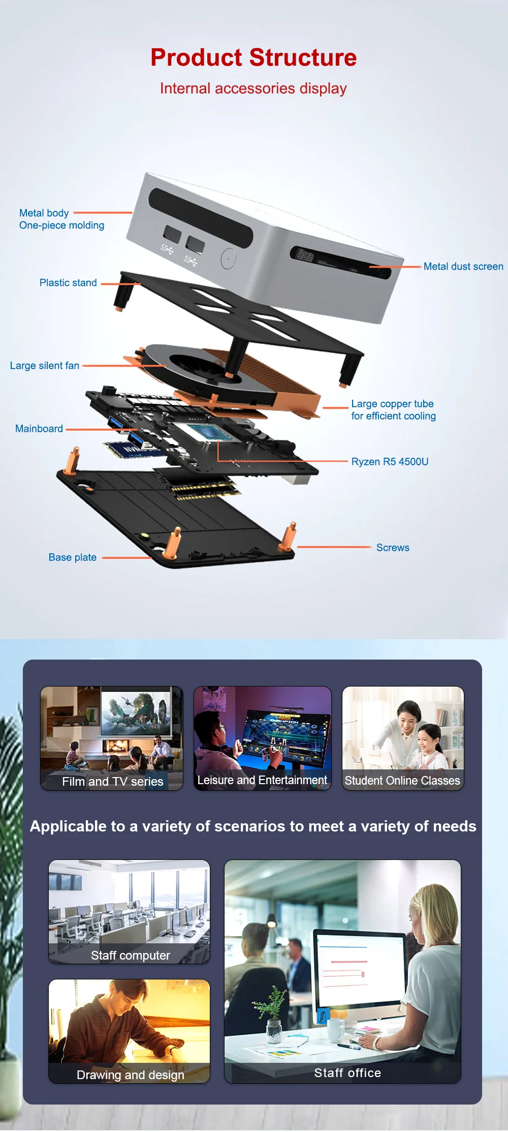 2023 GenMachine nuevo Mini PC Ren4000 4500U 1500MHZ GPU AMD Ryzen5 4500U Windows 10/11 DDR4 Suporte 64GB 3200MHz RAM WiFi6 NUC