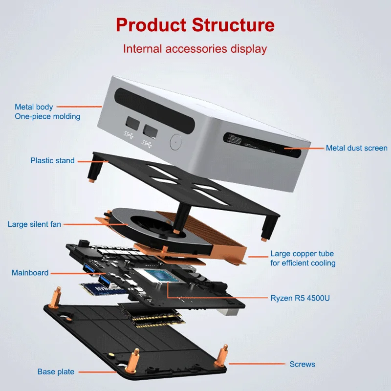 2023 GenMachine nuevo Mini PC Ren4000 4500U 1500MHZ GPU AMD Ryzen5 4500U Windows 10/11 DDR4 Suporte 64GB 3200MHz RAM WiFi6 NUC