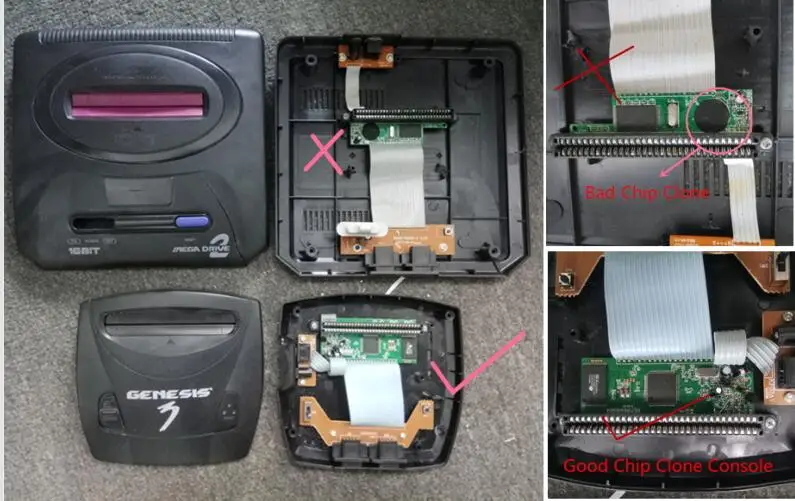 Acerca de las consolas. Nuestro juego 196 en 1, funciona con disfraces originales y consolas clones de buena calidad. Pero la consola de clonación de chips defectuosa, entonces no puede ejecutar este cartucho, solo puede ver el menú, no puede ejecutar ningún juego. Por favor revisa tu consola. Si su consola es clonada, verifique los chips internos, porque la consola clonada defectuosa no puede ejecutar este cartucho de juego. Actualizamos aquí la foto de los chips internos de la consola de buen clon y la consola de mal clon, luego sabrá esto.