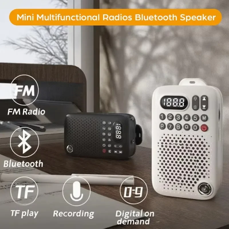Comprar 2025 Mini Radio Best Reception FM Radios Portable Wireless Bluetooth Speakers HD Recorder Support TF Card Player Timer Off