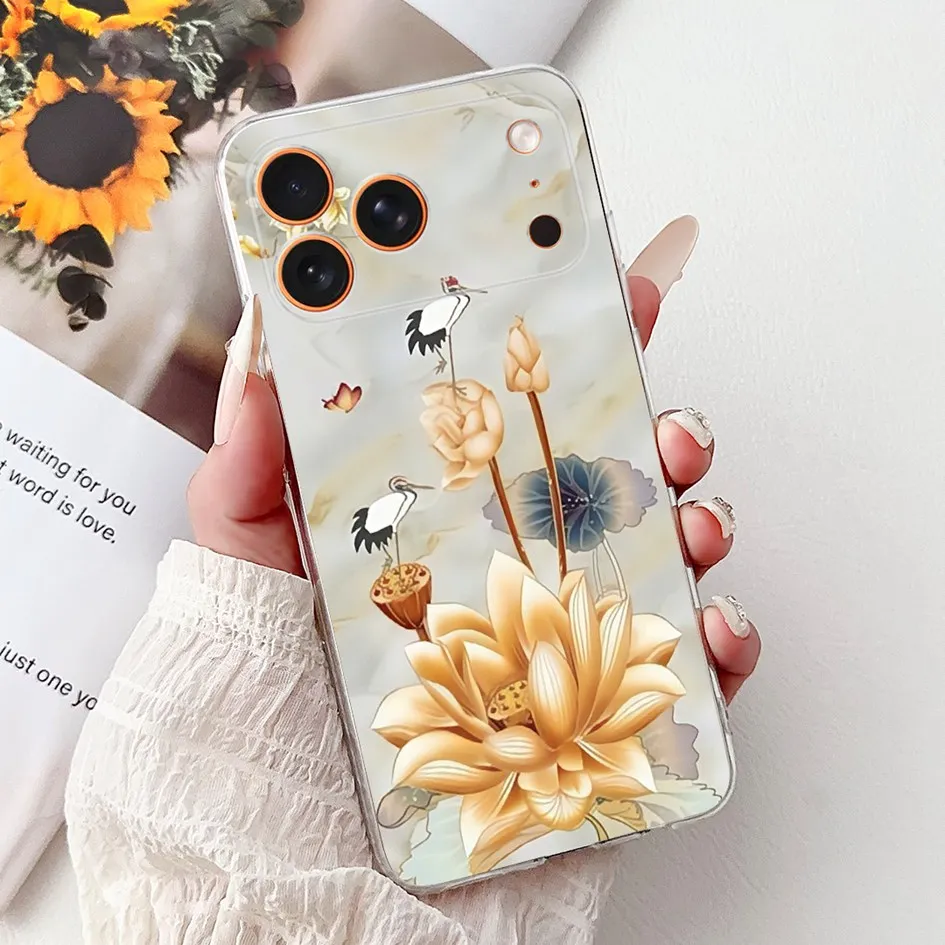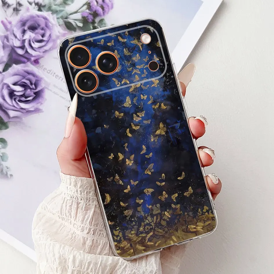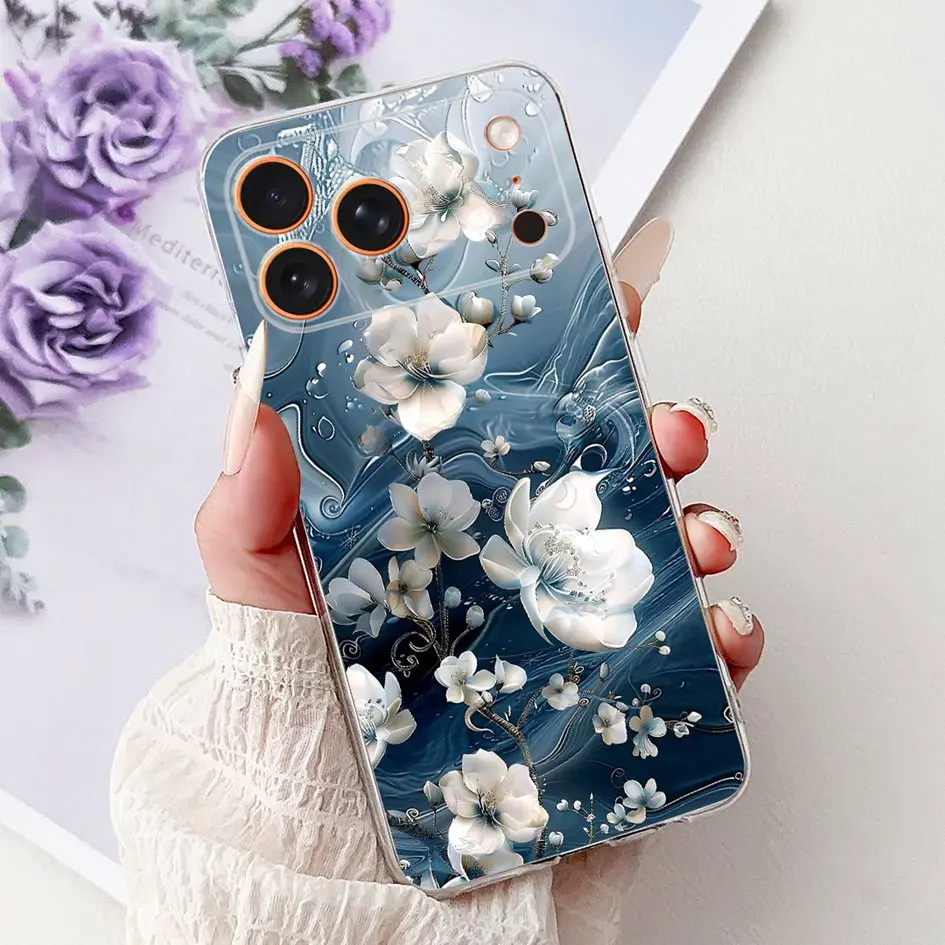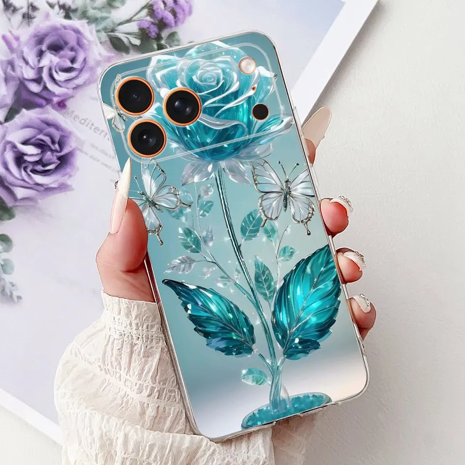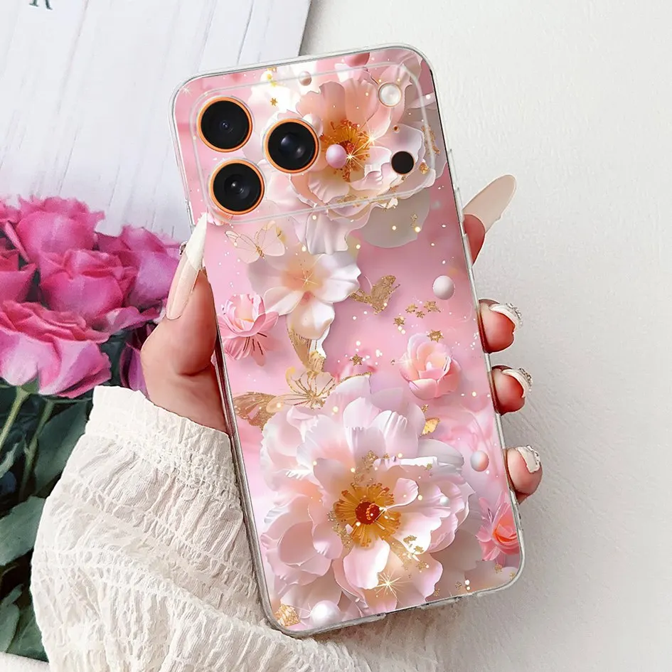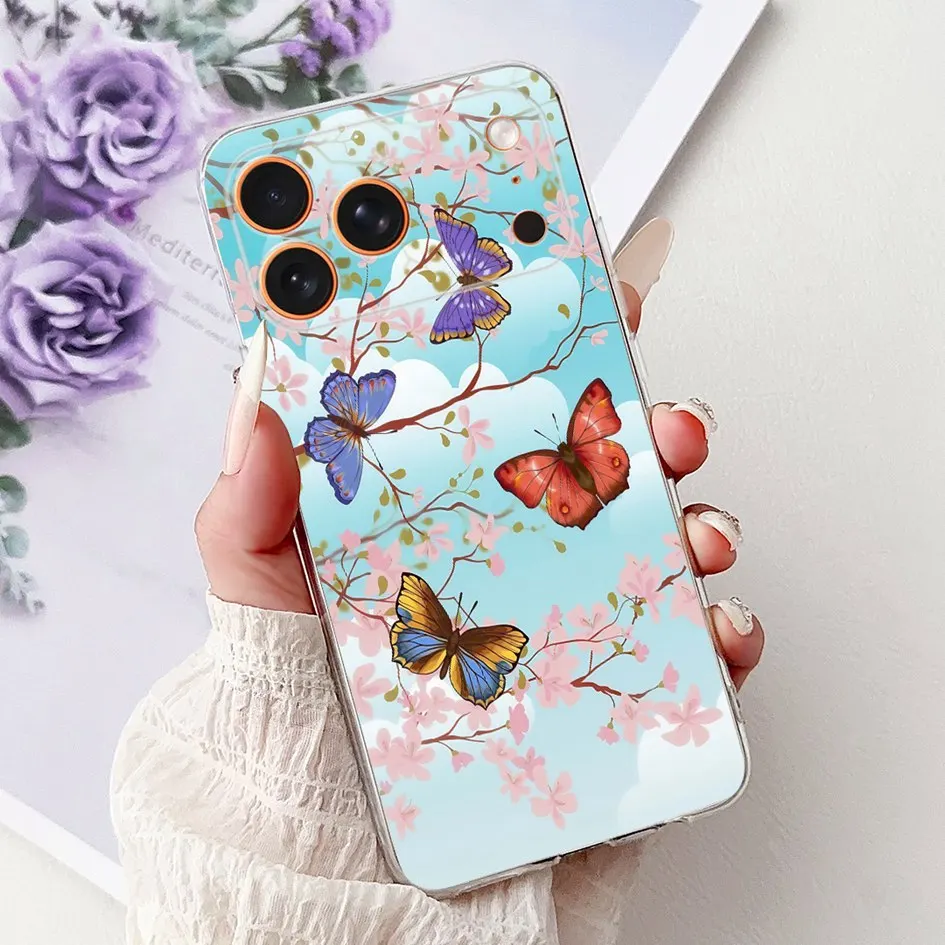 Detalle de productosFunda nueva para iPhone 17 Pro 2025, funda protectora trasera de silicona suave con flor de mariposa a la moda para iPhone17 17 Pro Max