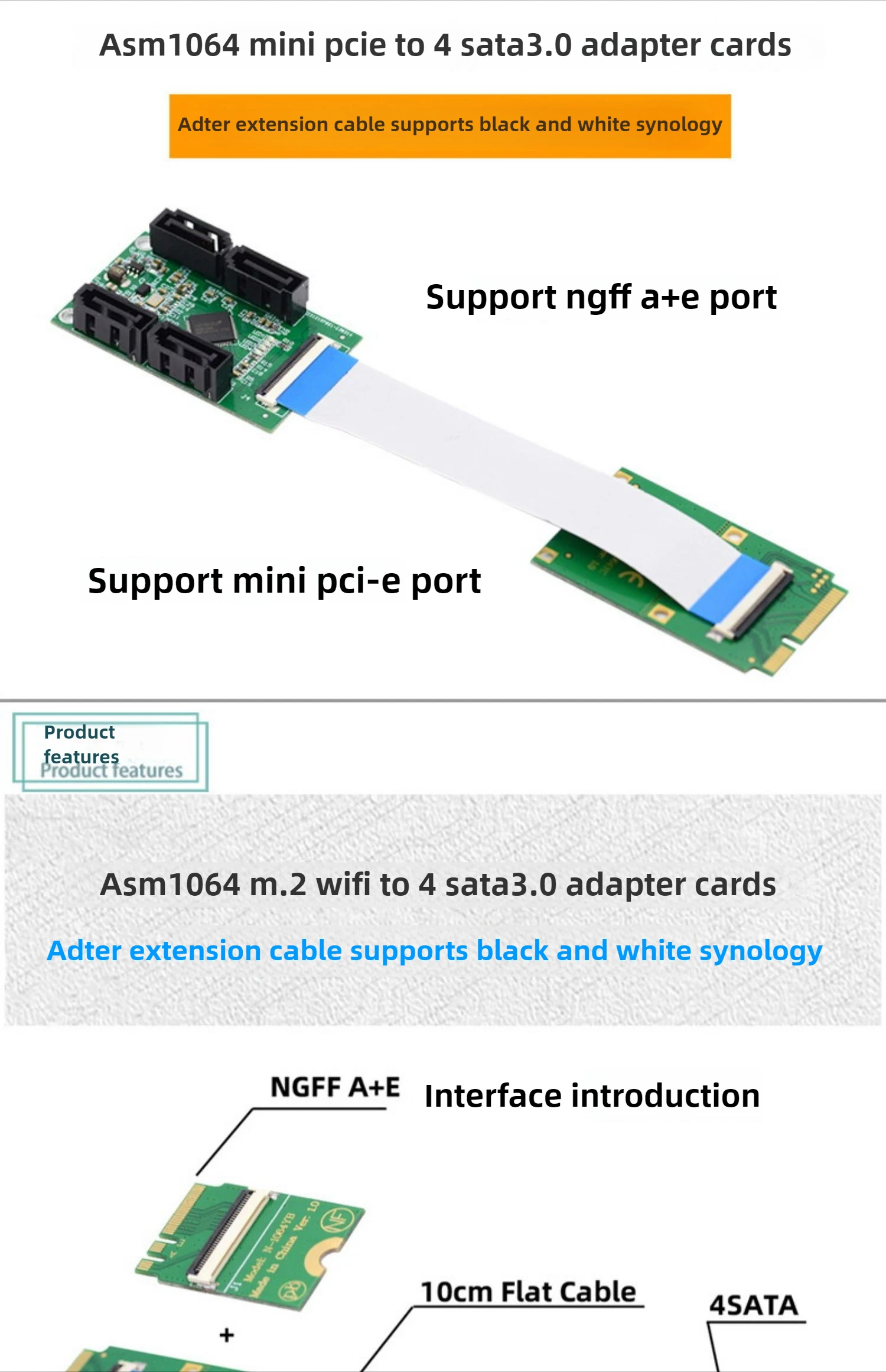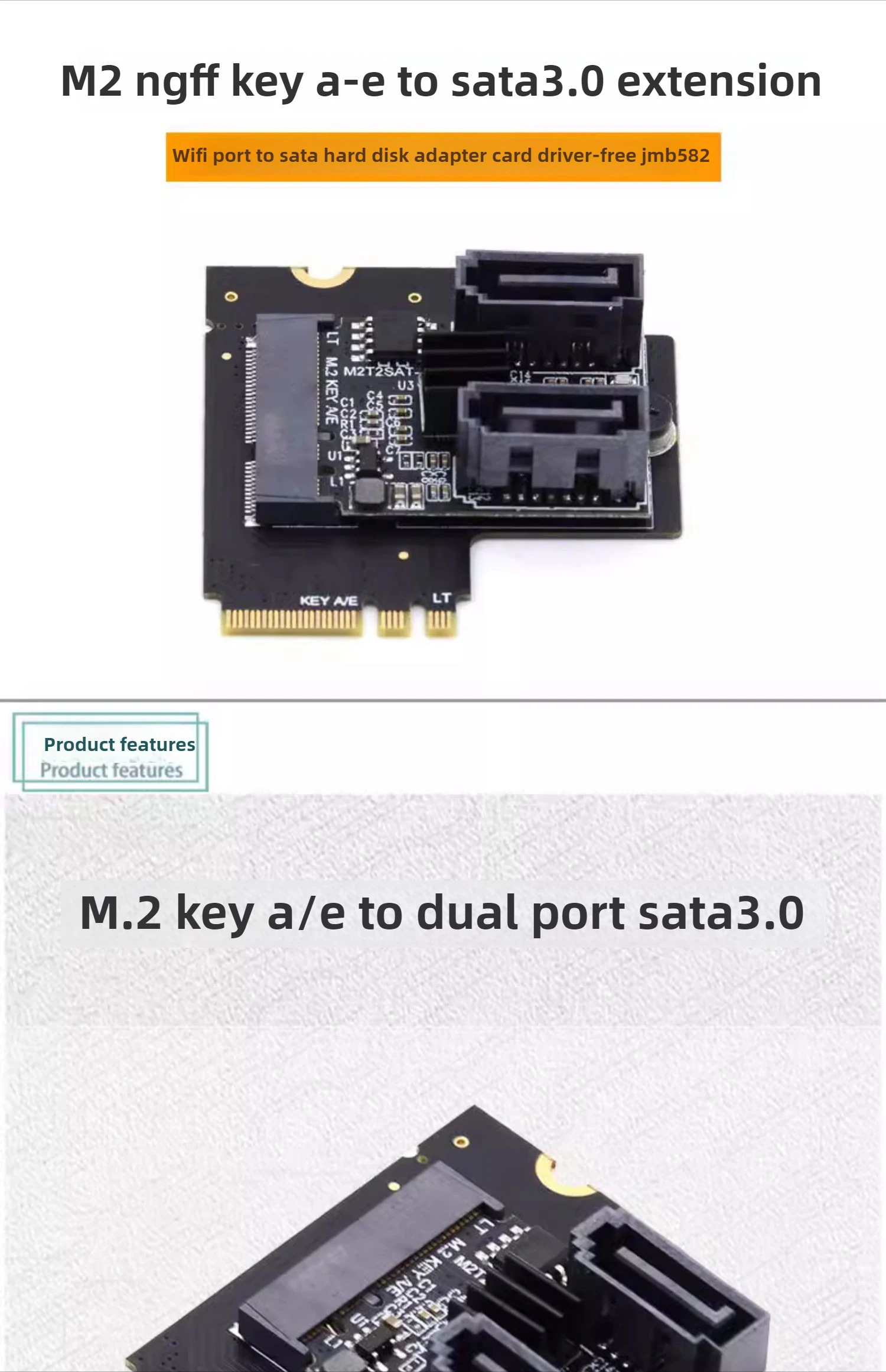 Comprar 2025 NUEVA tarjeta adaptadora de codo M2 NGFF KEY A-E, puerto WIFI de expansión a tarjeta adaptadora de disco duro SATA, unidad gratuita