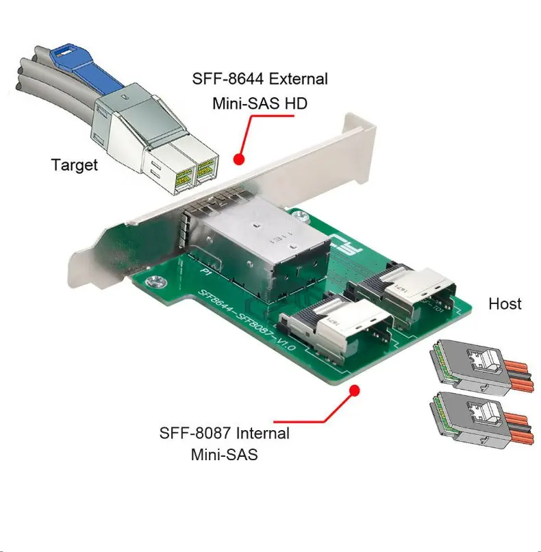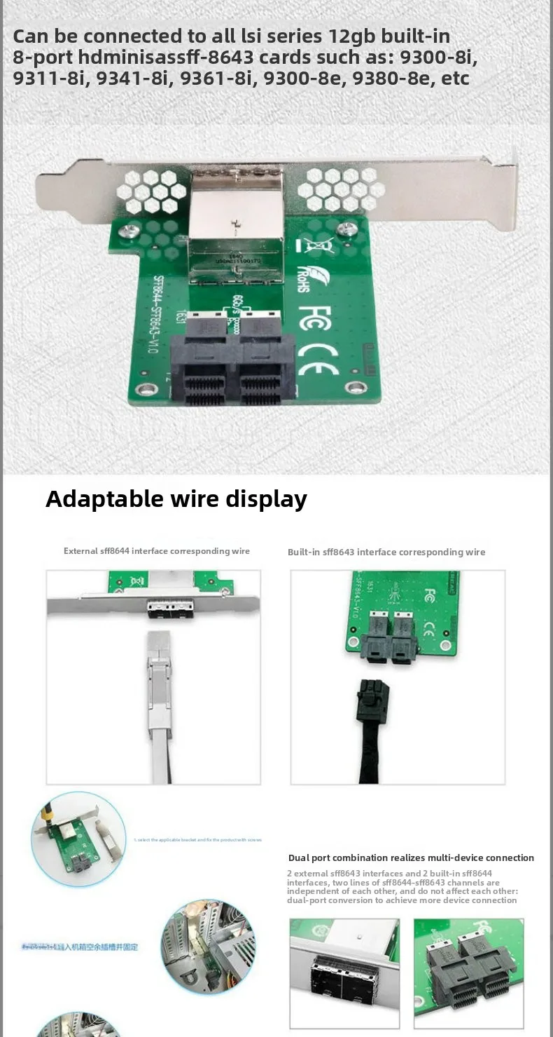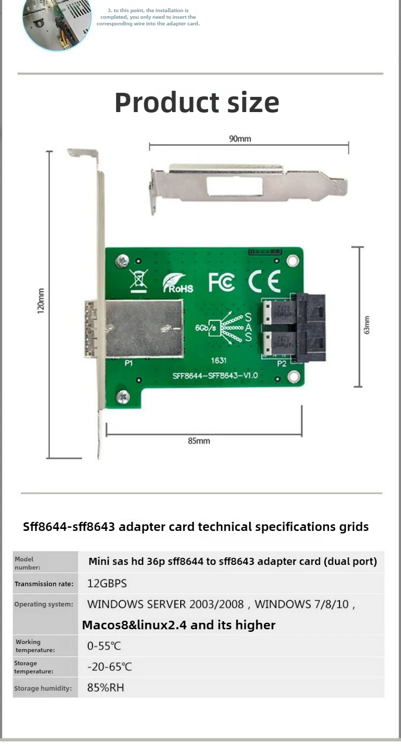 2025 NUEVA tarjeta adaptadora interna a externa de puertos dobles SFF-8643 8087 SF-8088 SFF-8644 Mini SAS HD 36P 12Gbps