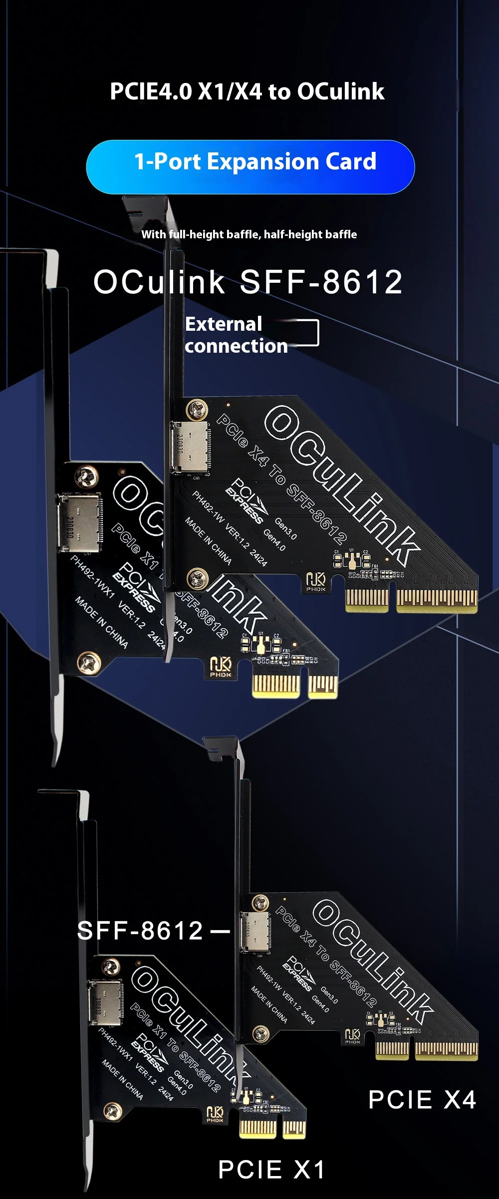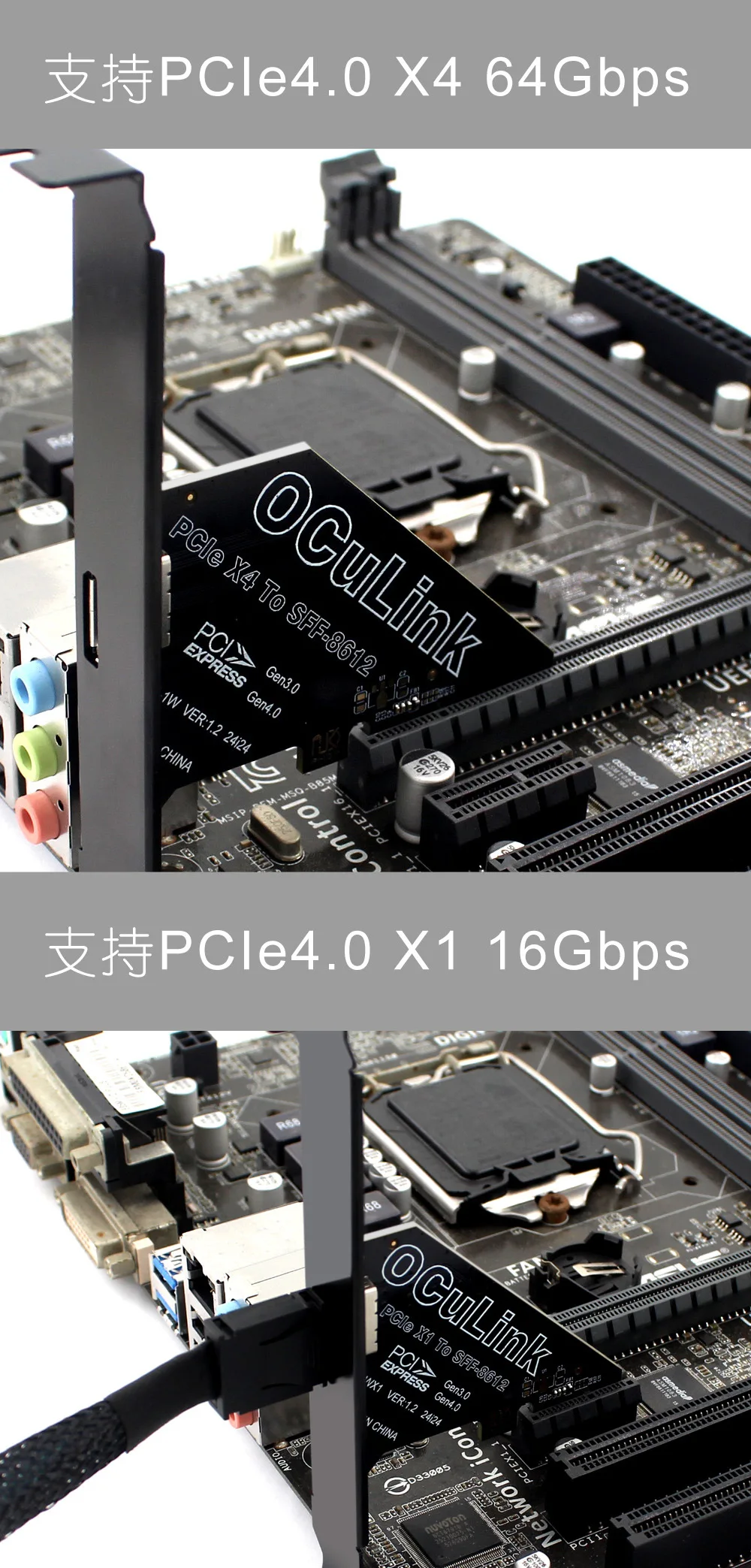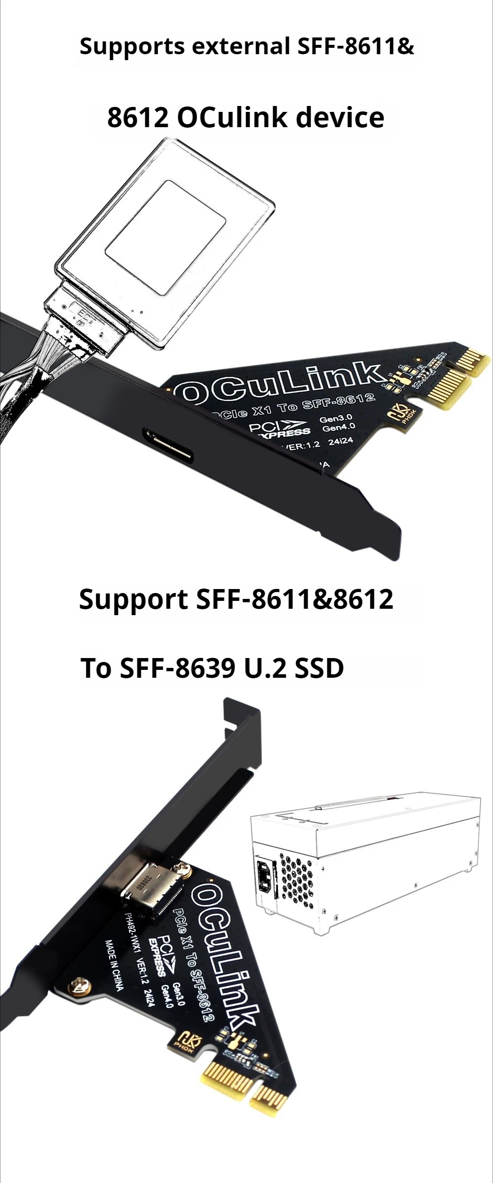 2025 NUEVA tarjeta de expansión PCIe 4,0 X1/X4 a Oculink SFF8611 y 8612 externa U.2 SSD SFF-8639 tarjeta gráfica externa 64Gbps 16Gbps