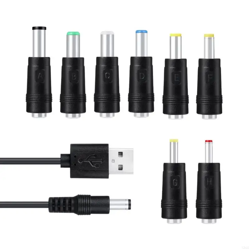 Características:OOTDTYCable de alimentación USB a CC con 8 conectores intercambiables, lo que hace que se ajuste a la mayoría de los electrodomésticos.No tiene que preocuparse por encontrar los adaptadores adecuados cuando utiliza varios dispositivos.