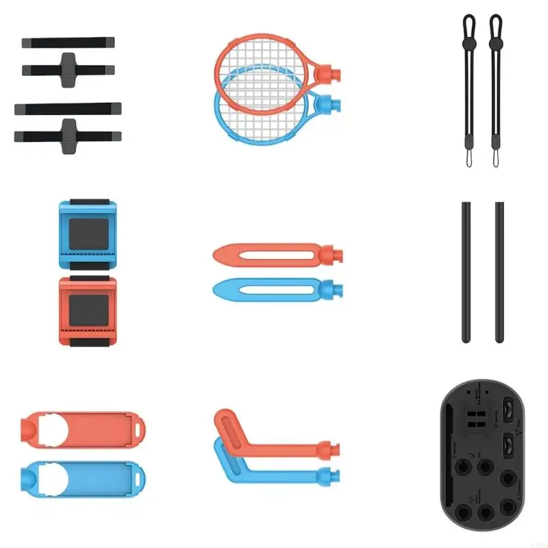 Con correas ajustables para las piernas, estabilizadores de muñeca y accesorios de raqueta realistas para mejorar el seguimiento en tenis y juegos de danza/fitness.