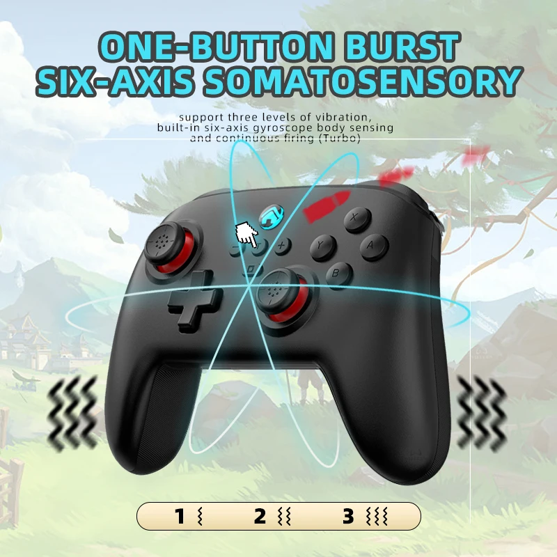¡Explosión de un botón, somatosensorial de seis ejes para Switch!Vibración de tres niveles, Turbo.Sumérgete en cada movimiento, siente los juegos reales.¡Mejora tu juego Switch!