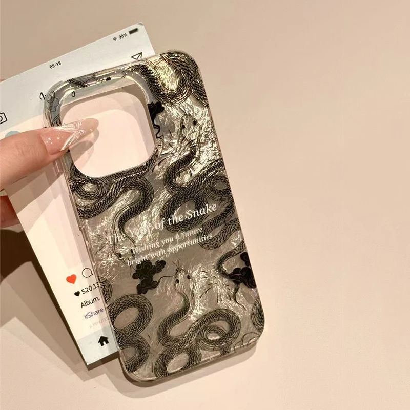 2025 nuevo estilo caja de teléfono de serpiente china para iPhone 11 12 13 14 15 16 Pro Max XS X XR 7 8 16 Plus SE 2022 cubierta transparente a prueba de golpes