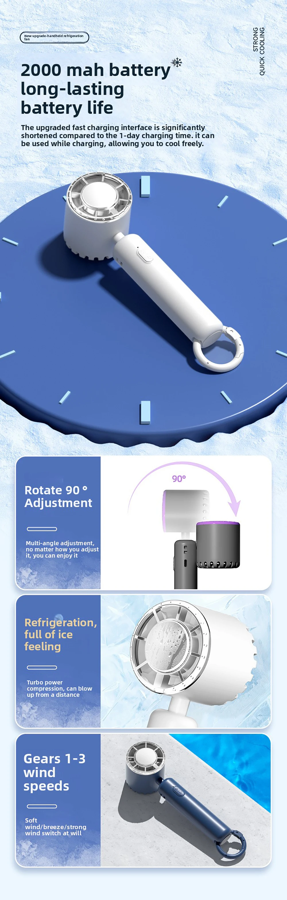 2025 nuevo Mini ventilador de 3 velocidades ventilador de refrigeración Camping al aire libre ligero portátil 90 ° Ventiladores de hebilla de montañismo de escritorio de rotación