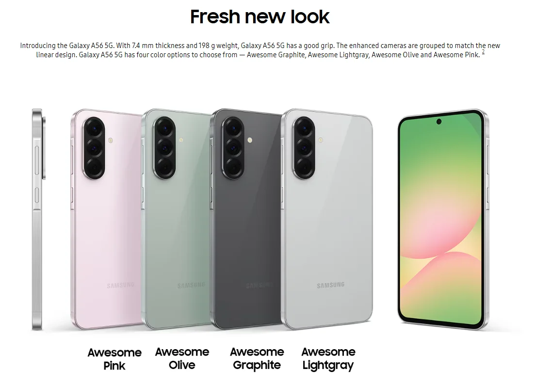 Smartphone Samsung Galaxy A56 5GVersión de Oriente Medio/Versión de TaiwánEnvío aleatorio