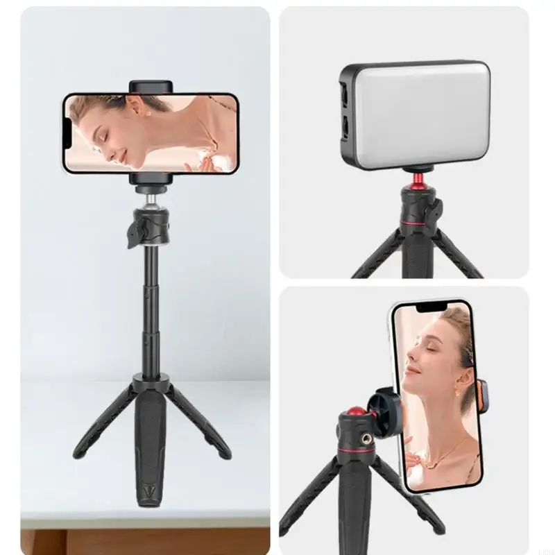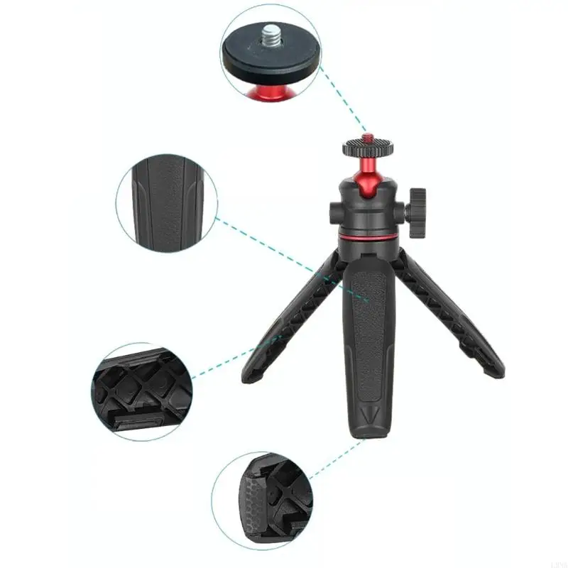 Características:OOTDTYTrípode plegable portátil con rótula de 360 grados, diseño liviano para un uso rápido, perfecto para creadores y fotógrafos de contenido en movimiento.