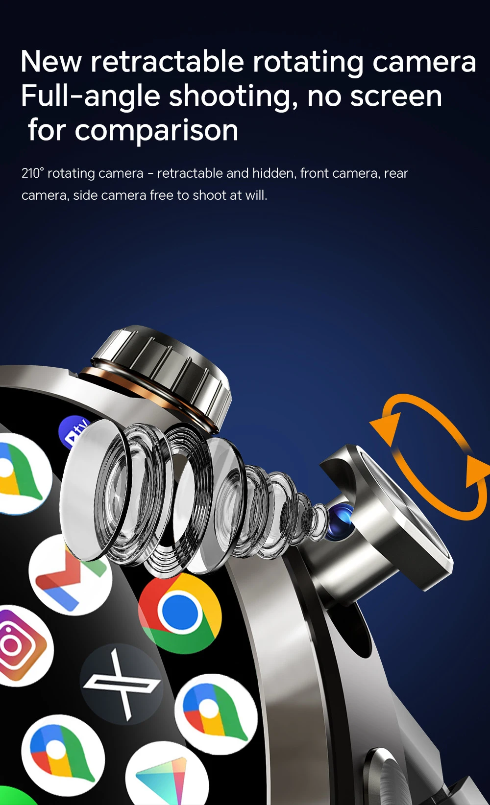 Comprar 2025 Smartwatch Pantalla AMOLED 210 ° Cámara giratoria GPS posición salud ritmo cardíaco reloj inteligente aplicación descargar NFC tarjeta SIM relojes