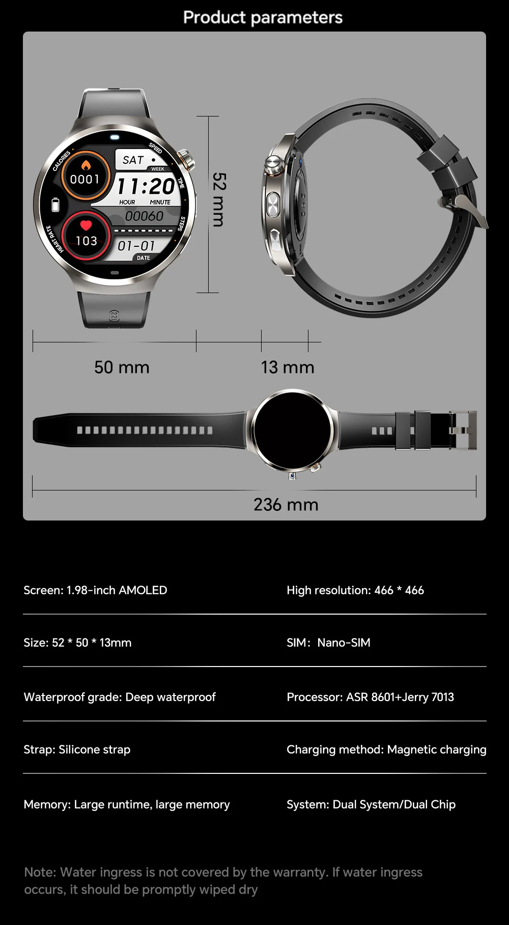 2. Tamaño de la pantalla: 1,98 pulgadas, 466 * 466 px AMOLED.