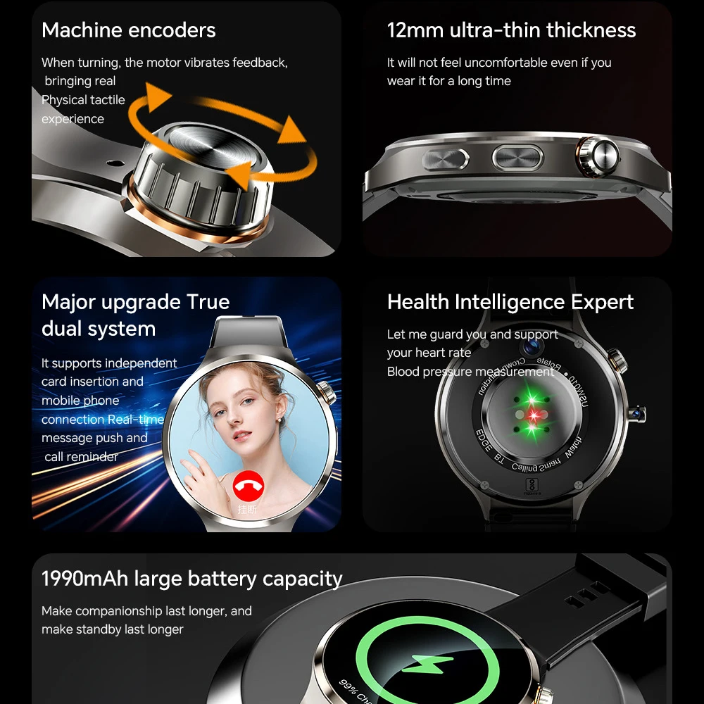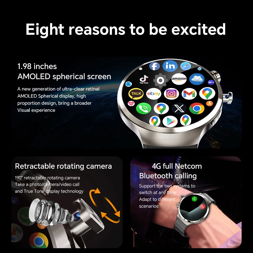 Comprar 2025 Smartwatch Pantalla AMOLED 210 ° Cámara giratoria GPS posición salud ritmo cardíaco reloj inteligente aplicación descargar NFC tarjeta SIM relojes