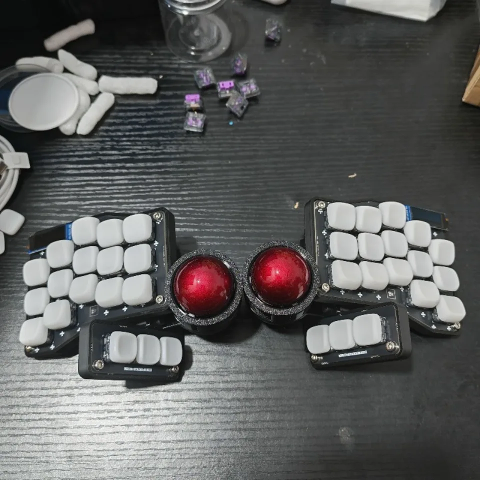 Consejos【1】 Nombre del kit: Teclado dividido con cruces/puñecas trackballAdmite Ese Hot Plug, disponible en modo único con cable (la versión de modo único con cable se lanzará más tarde)
