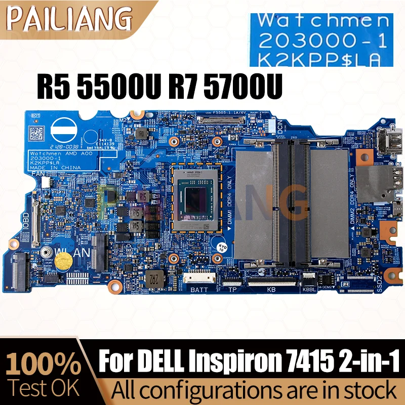 Comprar 203000 -1 para la placa base del cuaderno Dell Inspiron 7415 2 en 1 09X2G7 0MDMXX con placa base del ordenador portátil R5 5500U R7 5700U completamente probada