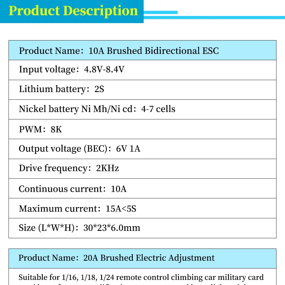 20A 4,8 V-8,4 V (para batería de litio 2S) Mini controlador de velocidad eléctrico cepillado ESC cepillo Motor electrónico para coche RC