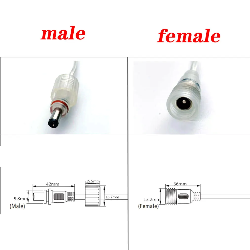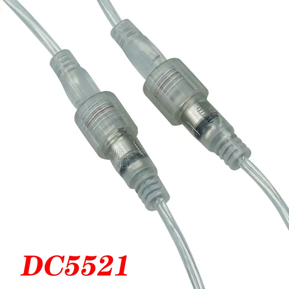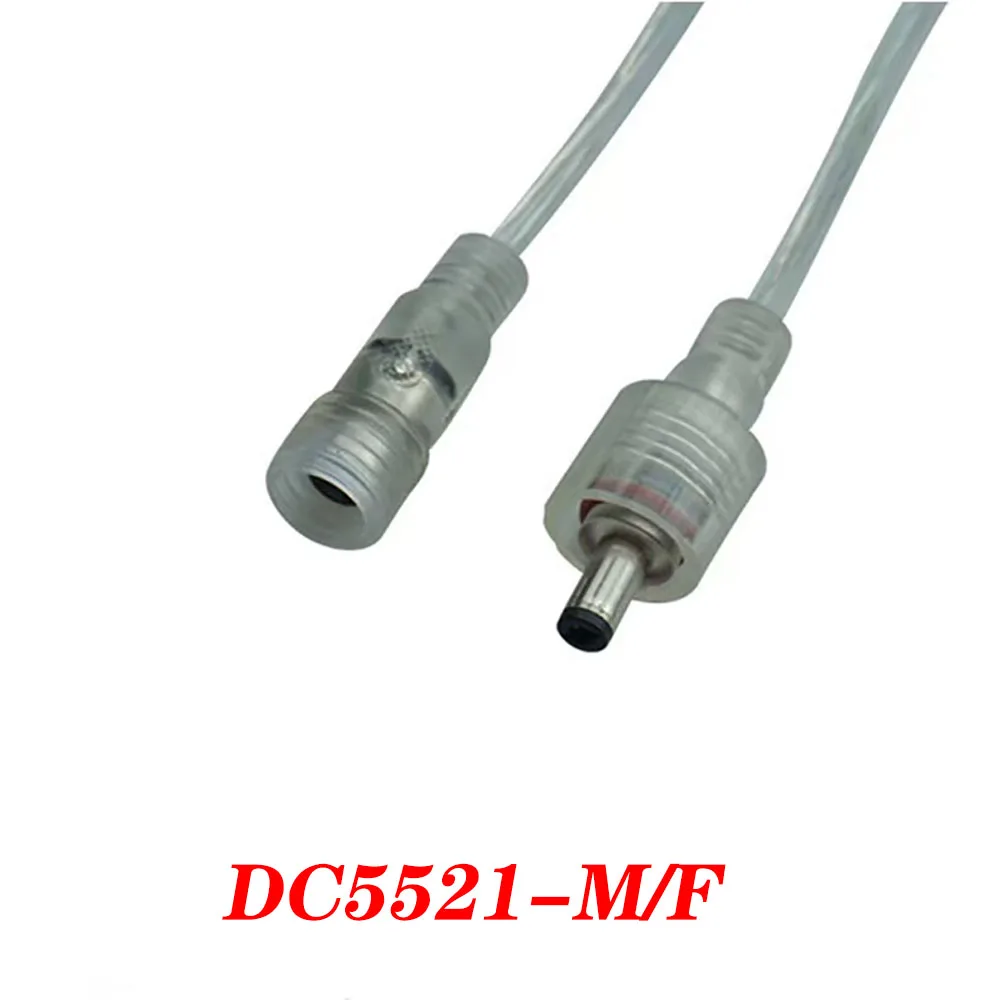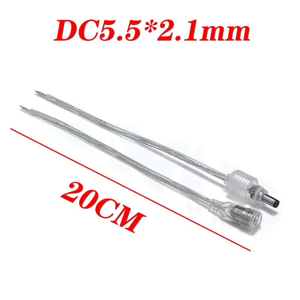 Comprar 20cm 22AWG 2A transparente DC macho hembra adaptador de corriente Cable extensible 5,5x2,1mm 5v 12V Cable conector para tira de luz LED