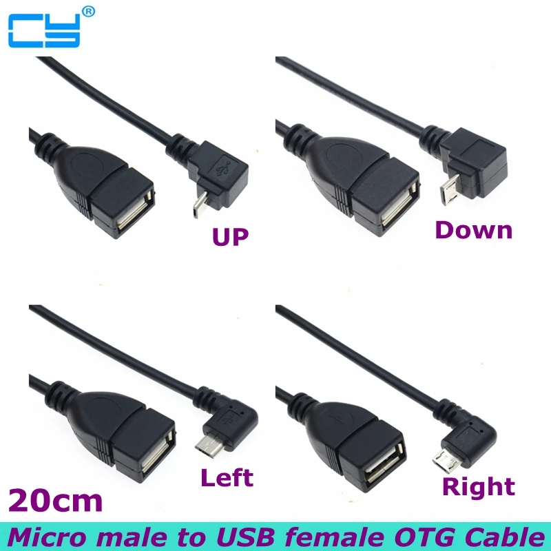 Comprar 20cm 90 grados arriba, abajo, izquierda y derecha conector en ángulo Micro USB macho a USB 2,0 hembra OTG Cable adaptador para U disco teléfono móvil